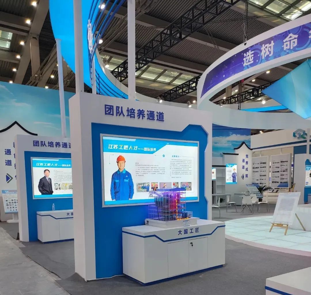 江苏以“创新强省、建功有我”为主题布置独立展区,分5个区域分别展现科创推荐、选树命名、竞赛成就、团队培育、群创孵化等5种通道培育的工匠人才及创新成果。在“团队培养通道”的区域中,徐矿集团工匠典型在展出之列,受到广泛关注。
