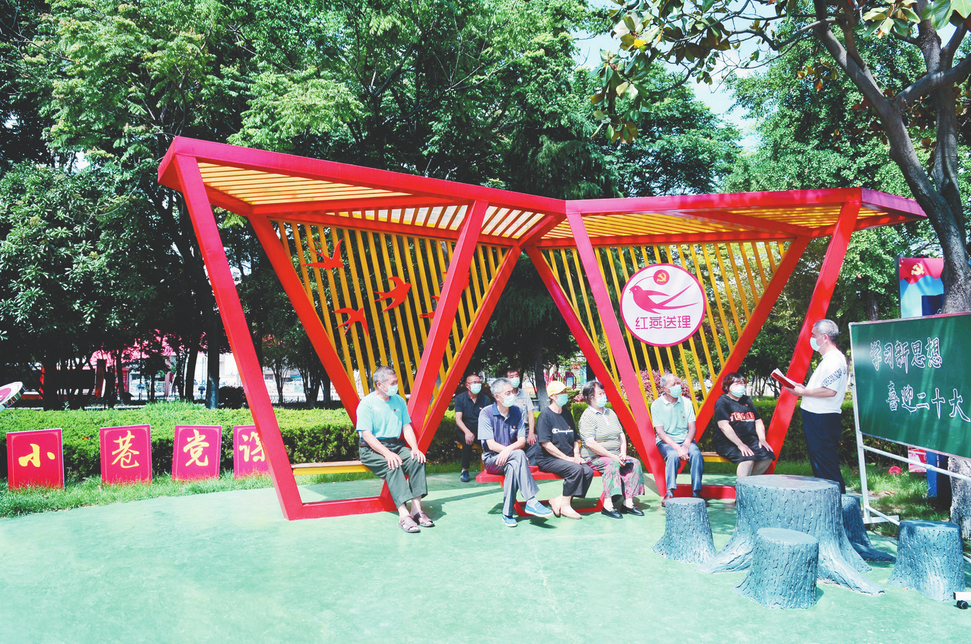 近日,南通市海门区解放西路社区的党员在滨河广场的“小巷党课”课堂上,以“学习新思想喜迎二十大”为主题,为居民群众上了一堂精彩的党课,让党的创新理论“飞入寻常百姓家”。