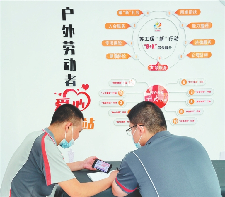 近年来,南通市总工会聚焦新就业形态劳动者生产生活需求,切实解决他们的急难愁盼,增强广大新就业形态劳动者的幸福感、获得感、安全感。如今,越来越多的外卖快递小哥在这里找到了“家”的感觉。