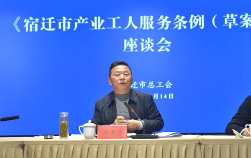 徐大勇指出,宿迁发扬首创精神,积极为产业工人代言,快速推进《宿迁市产业工人服务条例》立法,为全省乃至全国立法先行探路,体现了宿迁为推进产业工人队伍建设,促进工业高端化、智能化、绿色化发展自觉靠前服务的大局意识。希望宿迁始终坚持开门立法、民主立法、科学立法,广泛汇聚民意民智,认真梳理、研究、吸纳各方意见建议,进一步修改完善条例(草案)。