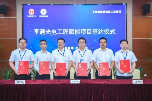 刘周伟等四位基层工程师代表作交流发言,分享了他们把职业当事业,扎根基层、务实勤奋、执着改善、专注钻研,永不言弃,守匠心造匠品,以匠魂育匠才的成长之路及感悟体会。亨通线缆工程师张波解读工匠精神内涵,带领高技能人才代表共同宣读了亨通工匠精神,并表示将一如既往始终致力于让“执着专注、精益求精、一丝不苟、追求卓越”的工匠精神在亨通集团技能人才队伍中实现代代相传。 本次论坛同步启动了亨通光电“匠心赋能、揭榜挂帅”工匠赋能项目,事业部总监盛春敏介绍说,他们在生产经营亟需改善提升的30多个项目中筛选出10个由工匠领衔挂帅攻关的项目。现场还举行了10个项目的签约仪式,并由项目领衔人工匠代表对项目实施作表态发言。 亨通集团高度重视高技能人才的培养,十多年来已评选出400多名技能工匠,通过定期举办的工匠论坛交流技能、展示成果、分享体悟。下一步,区总工会将在全区范围内推广工匠论坛活动模式,营造弘扬劳模精神、劳动精神、工匠精神的浓厚氛围,聚力打造有理想守信念、懂技术会创新、敢担当讲奉献的工匠队伍和新时代产业工人队伍。