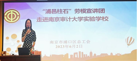 6月2日下午,浦口区总工会组织 “浦邑柱石”劳模宣讲团走进南京审计大学实验学校,邀请南京市劳动模范、全国优秀教师、江浦实验小学原语文老师王秋兰作宣讲。南京审计大学实验学校五十余名教职员工参加活动,浦口区总工会三级调研员陈金涛主持。