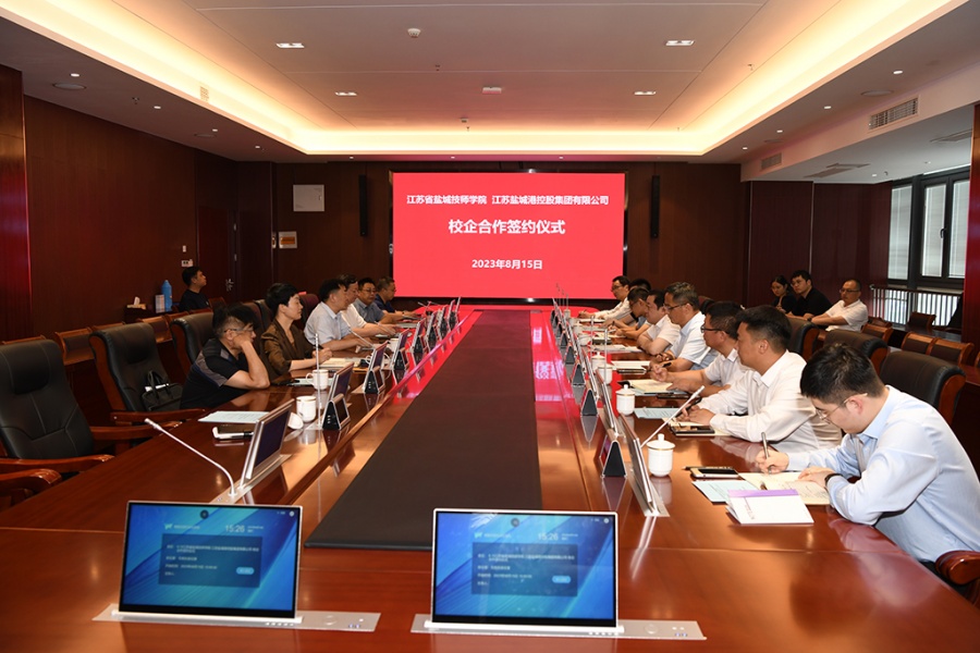 8月15日下午,盐城技师学院与盐城港控股集团有限公司举行校企合作签约仪式。盐城技师学院党委书记张体松、盐城港集团党委书记、董事长周正雄出席并分别致辞。盐城港集团党委副书记、总经理陆帅与盐城技师学院副校长唐监怀签订战略合作协议,副校长郑海风主持仪式,盐城港控股集团有限公司副总经理徐振山、梁洪兵,盐城技师学院党委委员曹永红,汽车工程学院、智能制造学院、交通工程学院负责人参加。