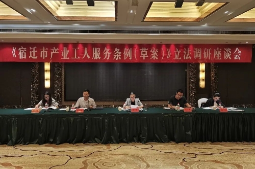 随后,调研组邀请县委组织部、县总工会、县人社局、县教育局、经开区管委会等部门工作人员与部分企业代表参与座谈,就深化工会改革发展和推进产业工人队伍建设改革、职工权益保障等方面进行了深入交流,并围绕《宿迁产业工人服务条例(草案)》提出了很多建设性的意见建议。