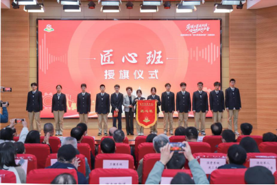 在“匠心班”授旗仪式上,鼓楼区关工委常务副主任王红云为在全国、省、市技能大赛中获奖的学生代表授予“匠心班”旗帜。学生代表印皓宇发表感言,并与现场全体同学齐声宣誓:“匠心筑梦、能行天下、激扬青春、强国有我!”铿锵誓言展现商校学子技能报国的青春担当。