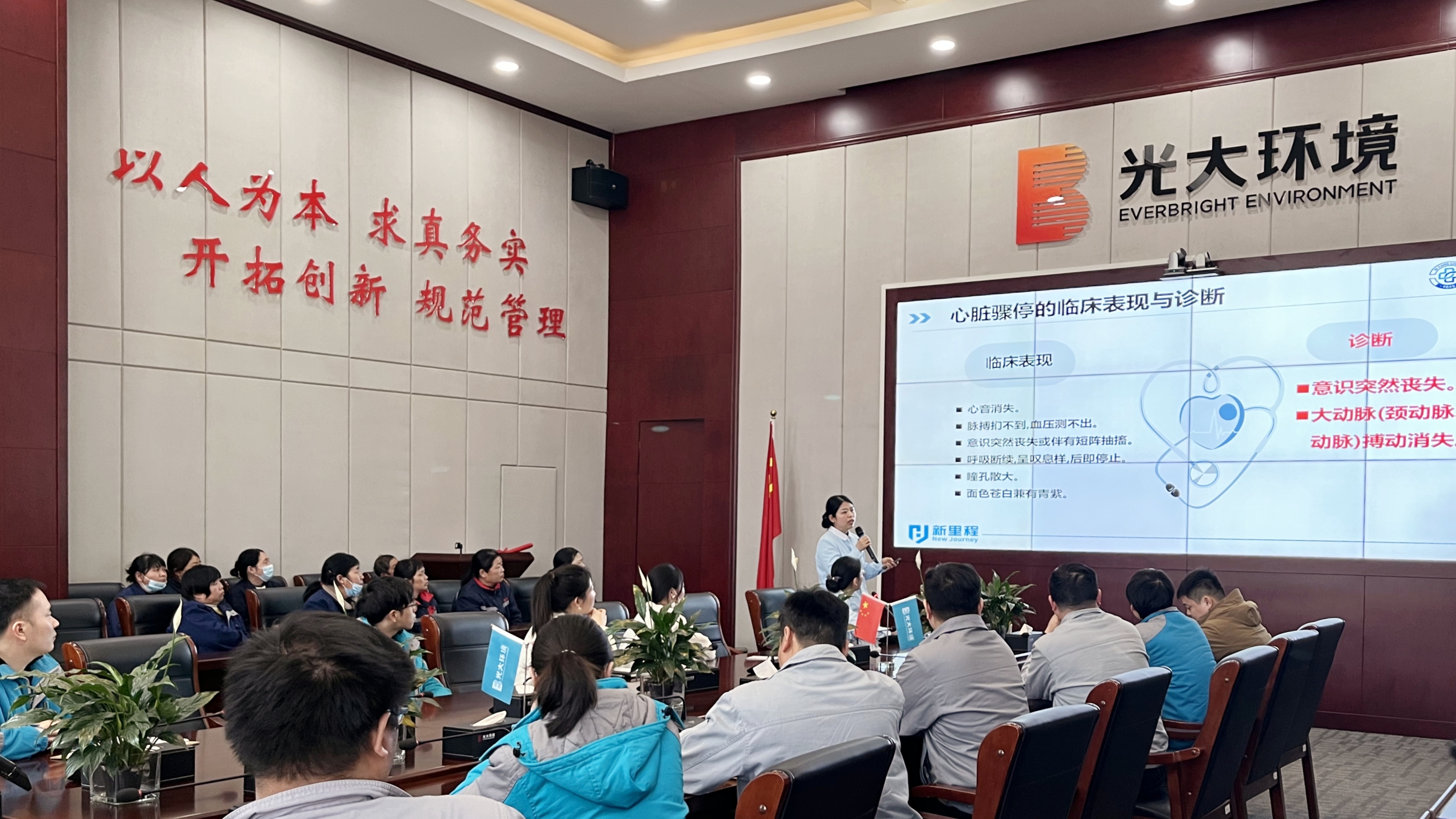近日,泗阳县总工会邀请泗阳县劳模工匠技术服务队队员、宿迁市劳模、泗阳医院神经内科护士长任静走进光大环保能源(泗阳)有限公司开展“救”在身边,健康科普系列活动。