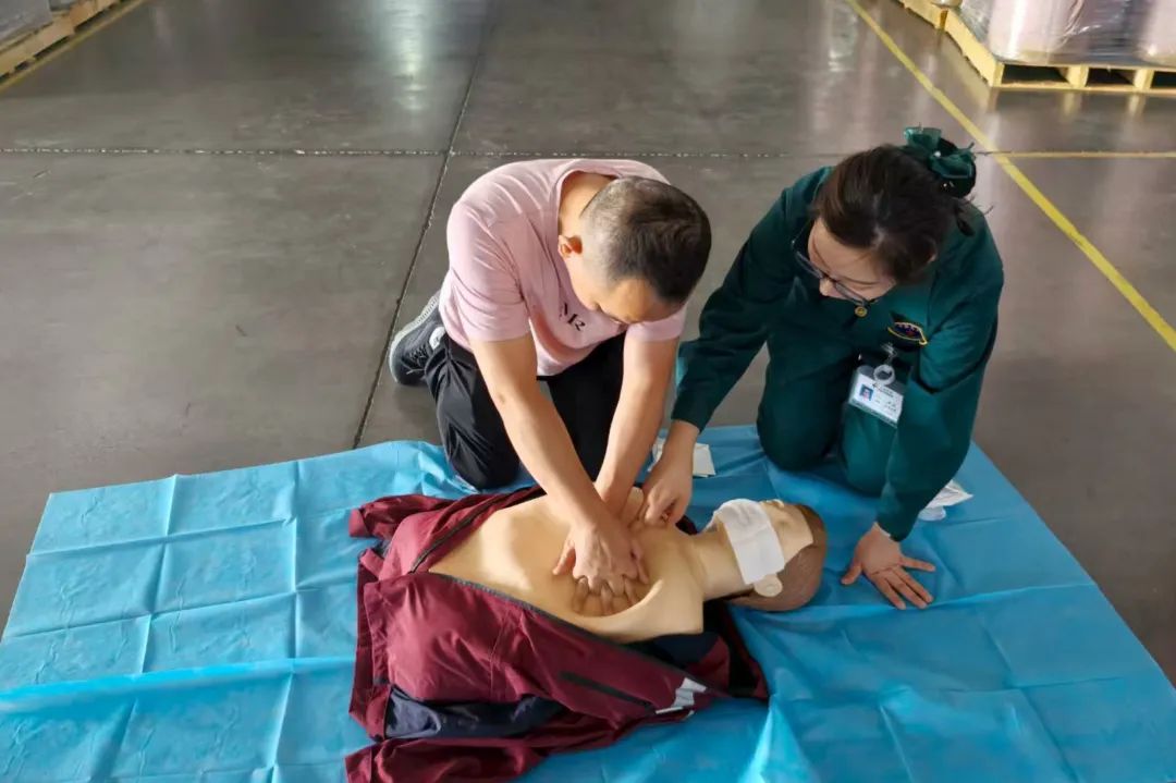 针对这些需求,陆慧团队量身定制了“理论 + 实操”的培训方案:先通过真实案例解析夏季中暑的成因、症状与预防要点,从“怎么防”到“怎么救”层层递进;再搬出模拟人教具,手把手示范心肺复苏的每一个细节——从判断意识、胸外按压的深度频率,到开放气道的正确手法,确保每位职工都能上手实操、规范掌握。